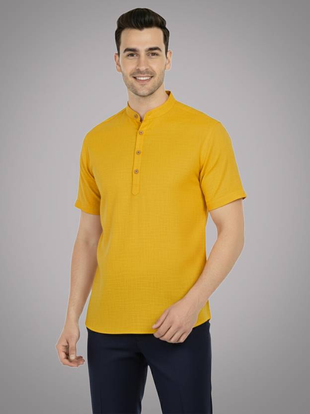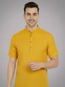 Men Solid Cotton Blend A-line Kurta (Yellow)