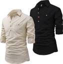 Univibe Pack of 2 Men Solid Cotton Blend Pathani Kurta (Beige, Black)