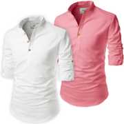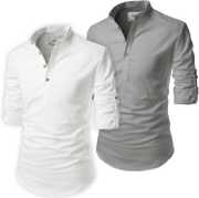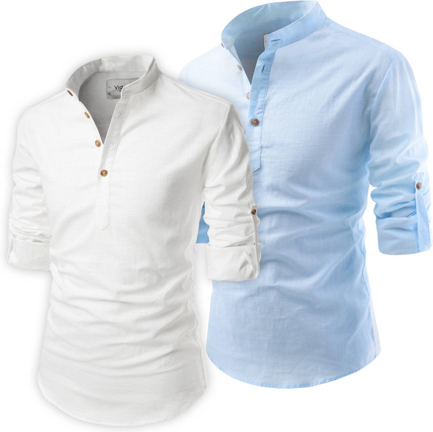 Univibe Men Solid Straight Kurta (Light Blue, White)