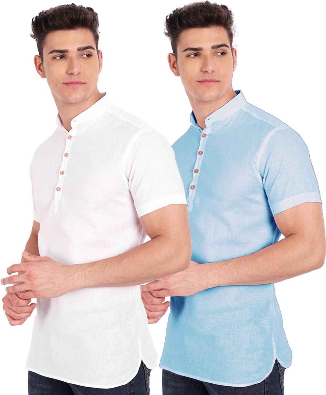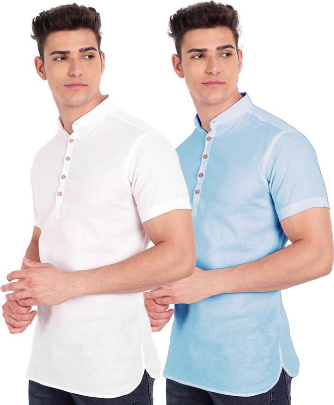 Univibe Pack of 2 Men Solid Pure Cotton Straight Kurta (Light Blue)