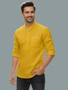 UNIFAV Men Solid Cotton Blend Straight Kurta (Yellow)