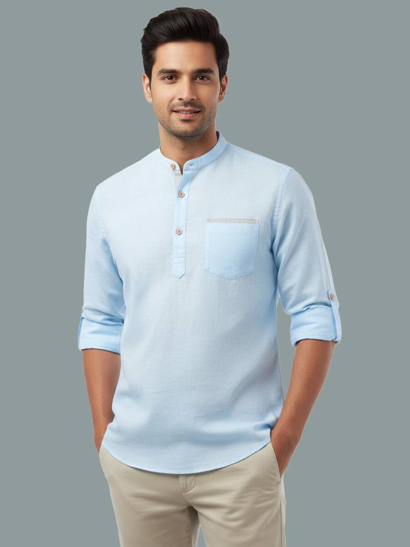 This Cotton Blend Short Kurta is perfect for men who value style and comfort. Its versatile design makes it ideal for any occasion—festivals, parties, or casual outings. Product Details 📋 👨‍🦰 Gender: Men 🎨 Pattern: Solid 🧵 Design Type: Plain 🔘 Closure: Button 👕 Sleeve: Half Sleeve ⬆️ Waist Rise: Mid-Rise 🪡 Hemline: Curved 🌿 Fabric: Cotton Blend 📏 Product Length: Short 📦 Material & Care 🧺 Fabric: Cotton Blend Wash: Suitable for hand wash and machine wash. How to Style 🎯 Pair it with dark-wash denim or linen trousers for a casual look. Dress it up with a pair of churidar or slim-fit pants for festive occasions. Add leather sandals or loafers and a wristwatch for a classy finish. Regular the sleeves for a relaxed vibe during daytime events. This shirt kurta seamlessly blends traditional elegance with modern styling, making it a wardrobe essential for every man! 👌