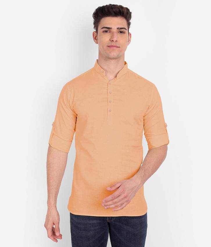 UNIFAV Men Solid Straight Kurta (Orange)