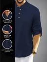 FireFish Men Solid Cotton Blend A-line Kurta (Dark Blue)
