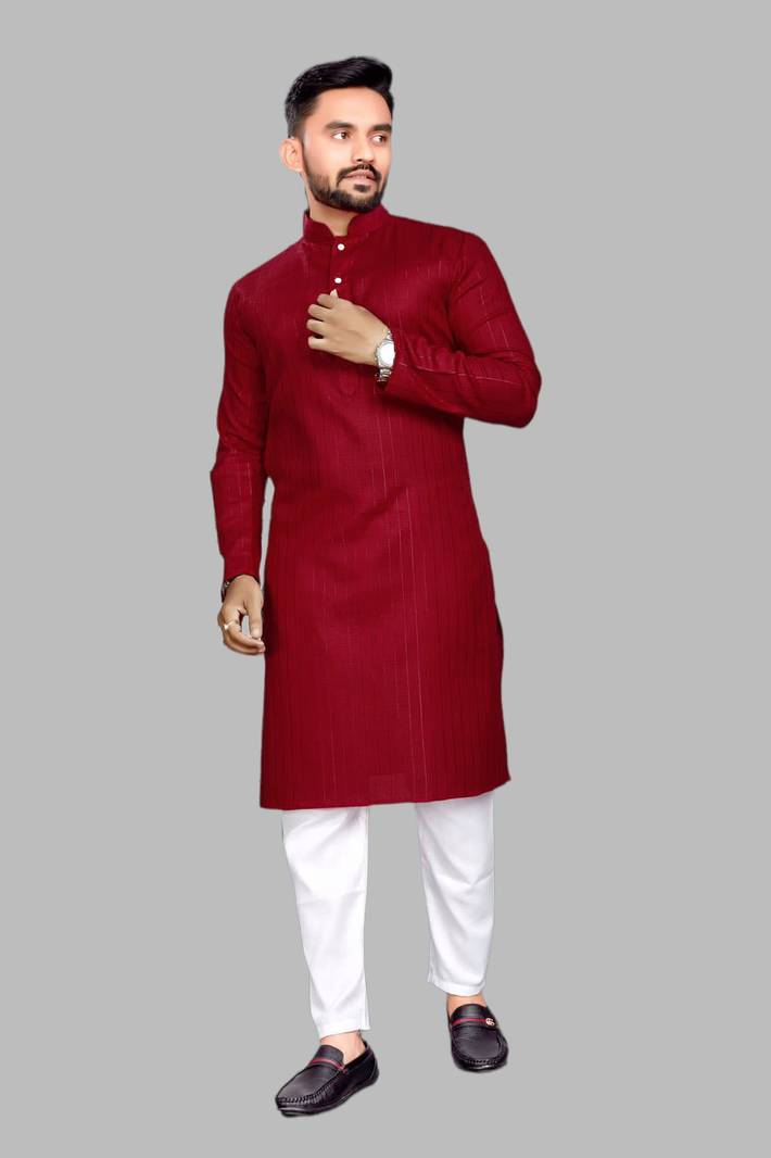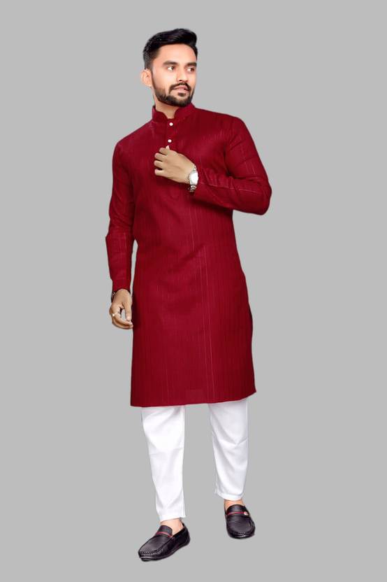 vuriq Men Striped Straight Kurta (Red)