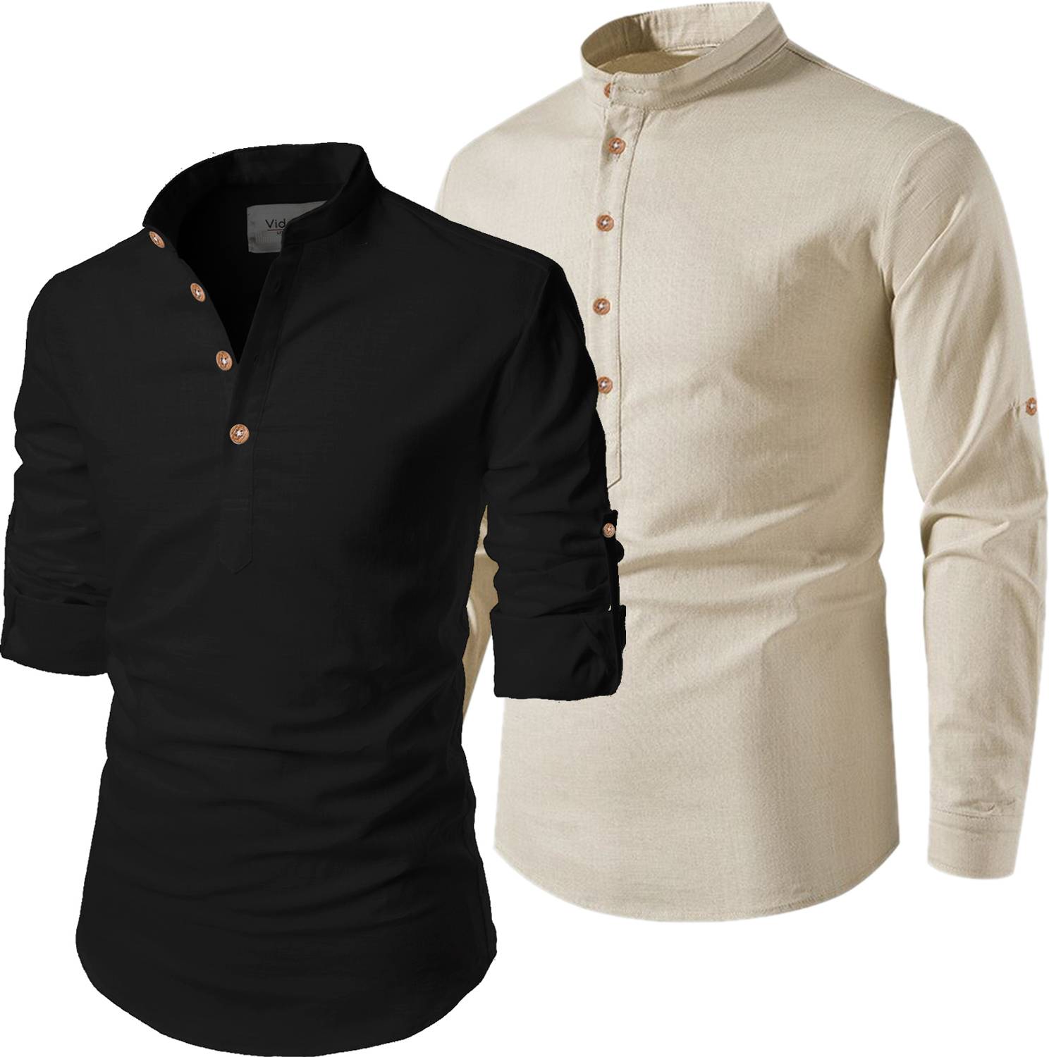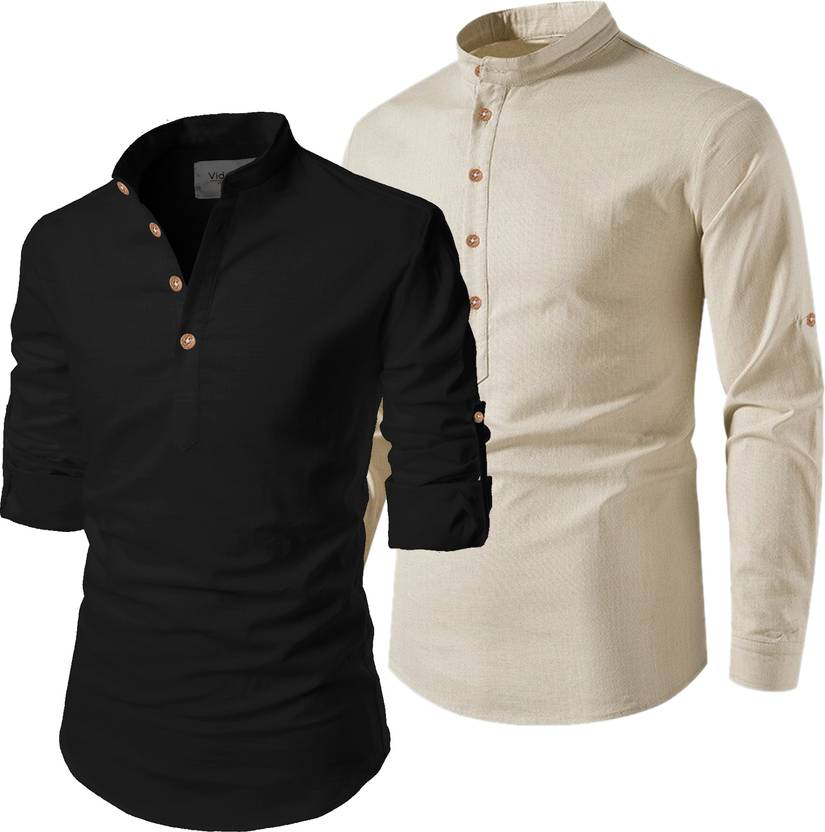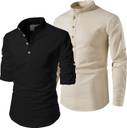 Pack of 2 Men Solid Pure Cotton Pathani Kurta (Black, Beige)