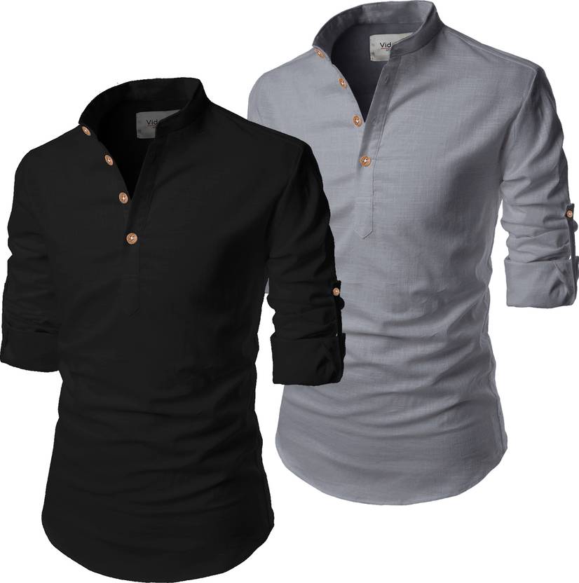 🌟 Elevate Your Style with Versatile Elegance! Introducing the Univibe Men's Cotton Kurta Pack of 2 in a sophisticated solid pattern. The Comon Black base, coupled with accent colors like Grey, Maroon, Orange, and more, ensures a wardrobe essential for every occasion. 👔 Design & Fit: Pattern: Solid Color: Comon Black with a spectrum of vibrant tones Closure: Button Weight: Lightweight Fabric: Crafted from Durable Luster Venture Cotton for a sleek finish Collar: Mandarin Collar Length & Sleeves: Regular length, Curved Hemline, and Full Sleeves 🌈 Versatile Style Options: Embrace the possibilities! Pair these kurtas with denim for casual flair or dress it up with tailored trousers for a refined look. The pack of 2 offers endless styling combinations. 🧼 Material & Care: Machine wash with like colors Cold water wash Dry in shade Tumble dry low Iron on the reverse side for lasting elegance 👖 How to Style: For a casual vibe, pair with denim and sneakers. Elevate the look with tailored trousers and loafers for a more polished appearance. The options are endless—express your style!