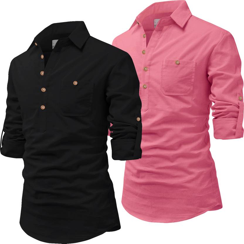 Univibe Pack of 2 Men Solid Pure Cotton Pathani Kurta (Black, Pink)