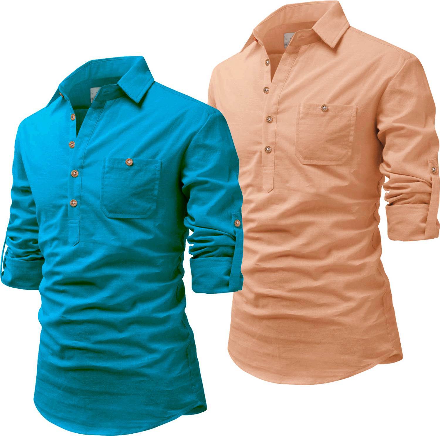 Univibe Pack of 2 Men Solid Cotton Blend Pathani Kurta (Orange)
