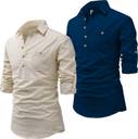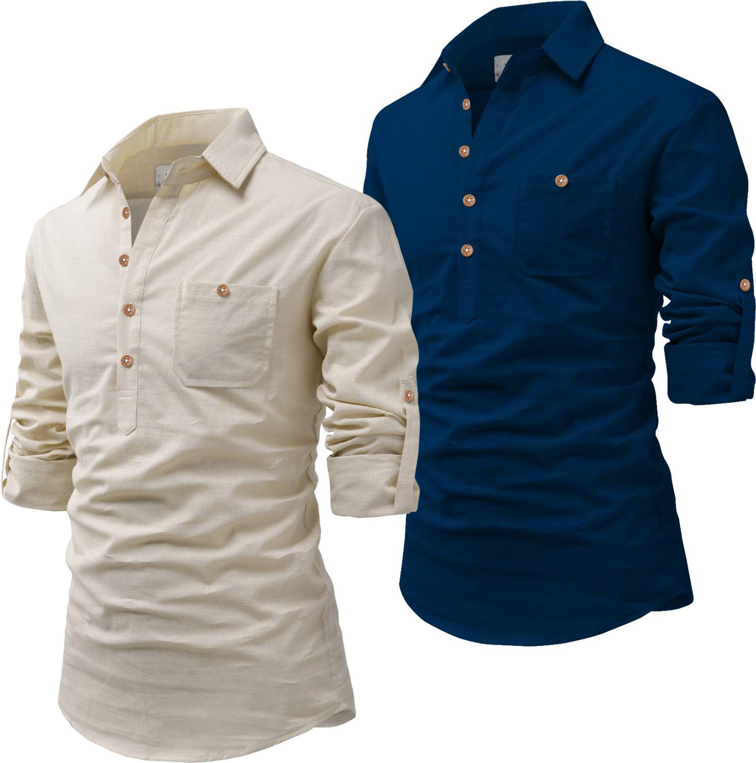 Univibe Men Solid Pathani Kurta (White, Dark Blue)