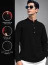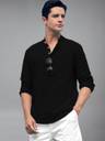 FireFish Men Solid Cotton Blend A-line Kurta (Black)