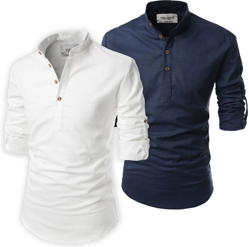 Univibe Men Solid Straight Kurta (Dark Blue, White)