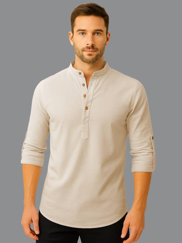 This pure cotton short kurta is perfect for men who value style and comfort. Its versatile design makes it ideal for any occasion—festivals, parties, or casual outings. Product Details 📋 👨‍🦰 Gender: Men 🎨 Pattern: Solid 🧵 Design Type: Plain 🔘 Closure: Button 👕 Sleeve: Full Sleeve (Roll-Up Option) ⬆️ Waist Rise: Mid-Rise 🪡 Collar: Mandarin/Chinese ✂️ Hemline: Curved 🌿 Fabric: Cotton Blend 📏 Product Length: Short 📦 Pack of: 1 Material & Care 🧺 Fabric: Cotton Blend Wash: Suitable for hand wash and machine wash. How to Style 🎯 Pair it with dark-wash denim or linen trousers for a casual look. Dress it up with a pair of churidar or slim-fit pants for festive occasions. Add leather sandals or loafers and a wristwatch for a classy finish. Roll up the sleeves for a relaxed vibe during daytime events. This short kurta seamlessly blends traditional elegance with modern styling, making it a wardrobe essential for every man! 👌"