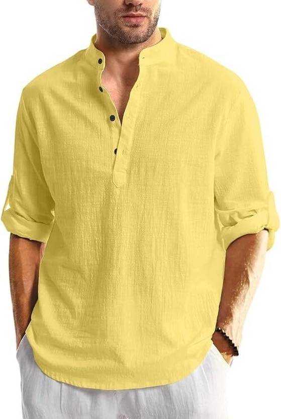 Amrit topwear Men Solid Straight Kurta (Yellow)