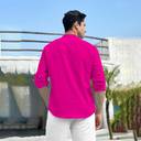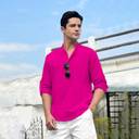 FireFish Men Solid Cotton Blend A-line Kurta (Pink)