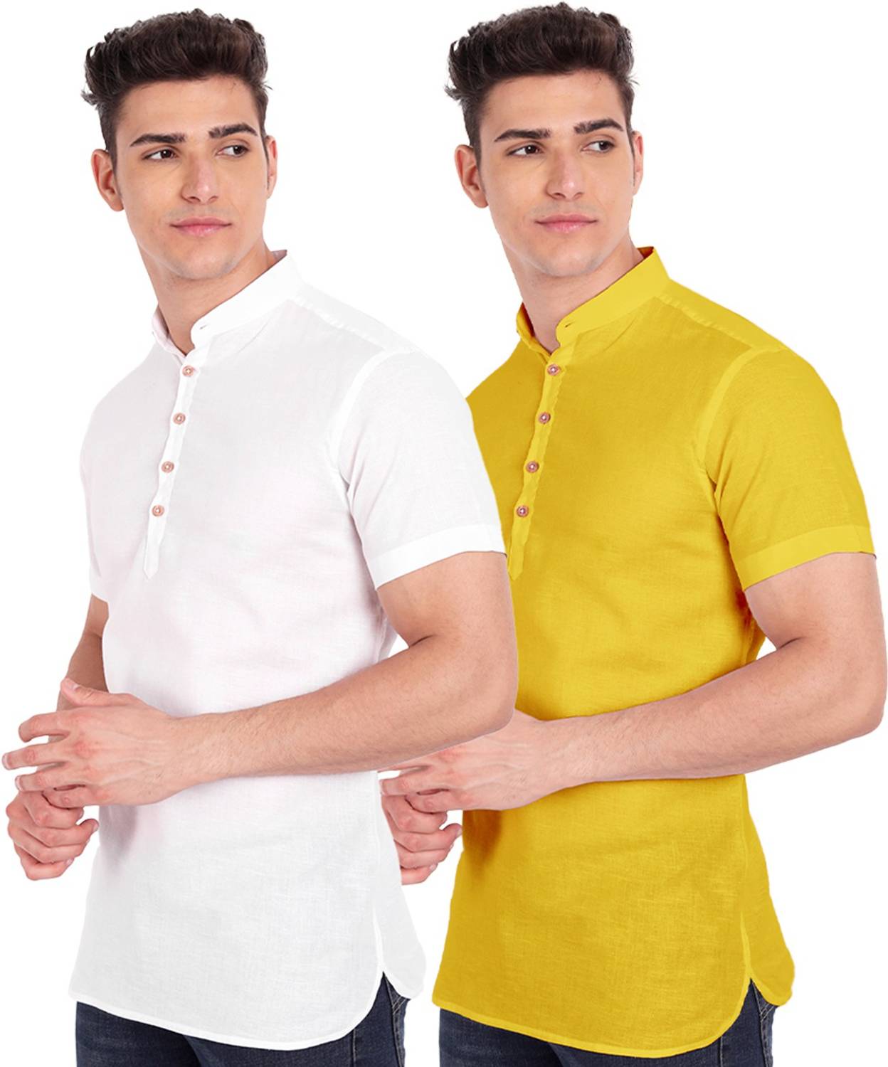 UNIFAV Pack of 2 Men Solid Pure Cotton Straight Kurta (White, Yellow)