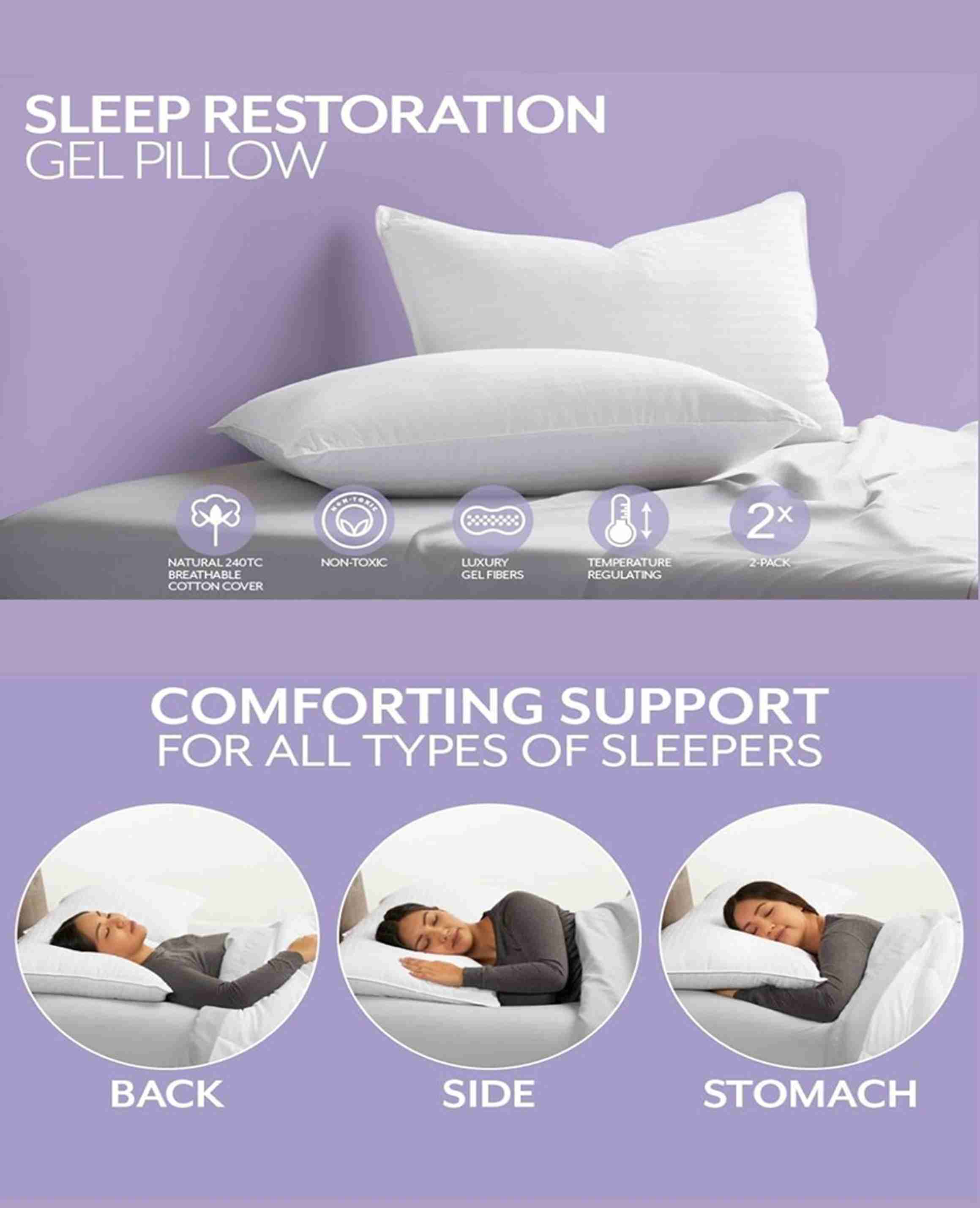 Cotton Sleeping Pillow Pack of 2 Solid (White)