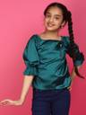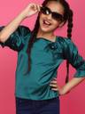 Girls Casual Satin Blend Top (Green, Pack of 1)