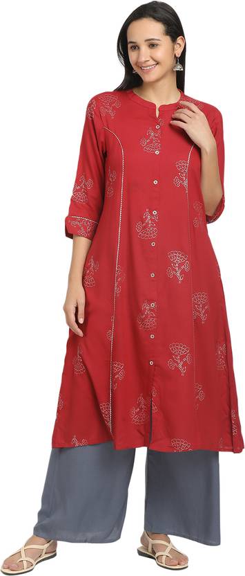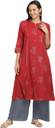 Women Self Design Pure Cotton Straight Kurta (Maroon, Gold)