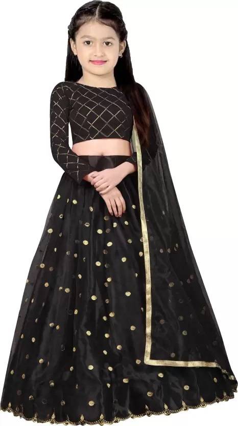 vajiba Girls Lehenga Choli Ethnic Wear Embroidered Ghagra, Choli, Dupatta Set (Black, Pack of 1)