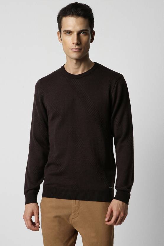VAN HEUSEN Solid Round Neck Casual Men Brown Sweater