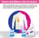 वैनिश क्रिस्टल सफेद अतिरिक्त ऑप्टिकल ब्राइटनर के साथ एक एक्सपर्ट फैब्रिक सफेदनर है जो आपके सफेद को ब्राइट करता है जिससे उन्हें 50 बार धोने के बाद भी नए जैसा चमक मिलती है। यह सबसे कठिन सूखे दागों को भी हटा देता है, एक दाग मुक्त कपड़े धोने को सुनिश्चित करता है और इसका क्लोरीन ब्लीच मुक्त सूत्र सुनिश्चित करता है कि बार-बार धोने के बाद भी कोई नुकसान या सुस्ती न हो। यह सभी कपड़ों पर उपयोग करने के लिए सुरक्षित है।