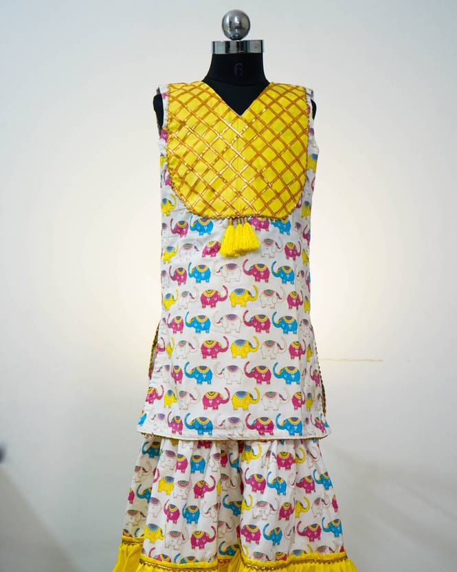 Girls Festive & Party Angarkha and Sharara Set (Yellow Pack of 1)
