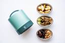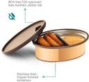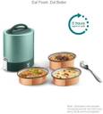 बॉक्स में क्या है: - एक 400 ml कंटेनर, दो 300 ml कंटेनर, तीन ढक्कन, तीन पार्टीशन्स, बेस, एक वैक्यूम इंसुलेटेड आउटर शेल; रंग: हरा, मटेरियल: स्टेनलेस स्टील, कंटेनर: कॉपर-फिनिश, शेप: ओवल, कैपेसिटी: 1000 ml / एडवांस्ड टेक्नोलॉजी के साथ आपके भोजन को ताजा और गर्म रखता है : - लंचबॉक्स में डबल-वॉल्ड वैक्यूम इन्सुलेशन है जो यह सुनिश्चित करता है कि आपका भोजन कम से कम 4 - 5 घंटे तक गर्म और ताजा रहे। / प्रीमियम क्वालिटी वाले कंटेनर और पार्टीशन्स: - प्रीमियम कॉपर-फिनिश्ड कंटेनर आपके लंचबॉक्स में एलिगेंस का टच जोड़ते हैं। सभी कंटेनर एक आसान ओपनिंग BPA-फ्री ढक्कन के साथ आते हैं। कंटेनर स्वाद या सेंट को बनाए नहीं रखते हैं, इसलिए आप इसे बार-बार इस्तेमाल कर सकते हैं। प्रत्येक कंटेनर आपके लिए एक उपयुक्त अनुपात में कई खाद्य पदार्थों को व्यवस्थित करने के लिए विभाजन के साथ आता है। विभाजन अलग-अलग भोजन को छूने और कंटेनरों में गड़बड़ होने नहीं देते हैं। कंटेनर डिशवॉशर सुरक्षित हैं। / भोजन ले जाएं चलते-फिरते: - टीन्स और ऑफिस जाने वालों के लिए एक अच्छी तरह से संतुलित स्वस्थ दोपहर का भोजन बहुत महत्वपूर्ण है। टाइफिन 1000 ml लंच बॉक्स का उपयोग फल, सब्जियां, सैंडविच, कार्ब्स, मांस, बिरयानी और यहां तक कि मिठाई ले जाने के लिए किया जा सकता है। कॉलेज, काम, कैंपिंग, यात्रा या किसी भी इनडोर या आउटडोर एक्टिविटीज़ में लंच ले जाने के लिए बिल्कुल सही है। एक वैक्यूम इंसुलेटेड आउटर शेल