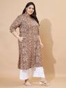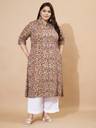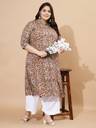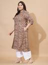 वबुयज महिलाओं के लिए कलमकारी A-लाइन कुर्ता (बेज)