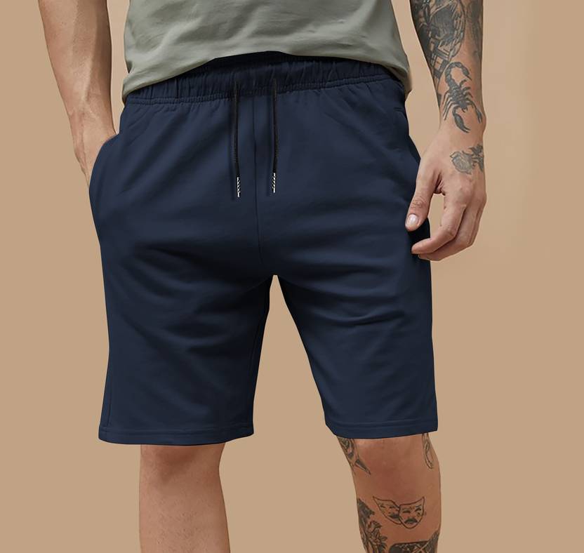 VCANEE Solid Men Dark Blue Casual Shorts
