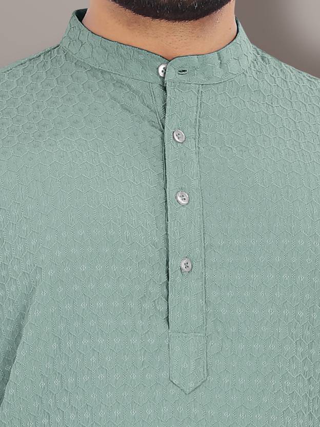 वेबनॉर पुरुषों के लिए सॉलिड स्ट्रेट कुर्ता (हल्का हरा)