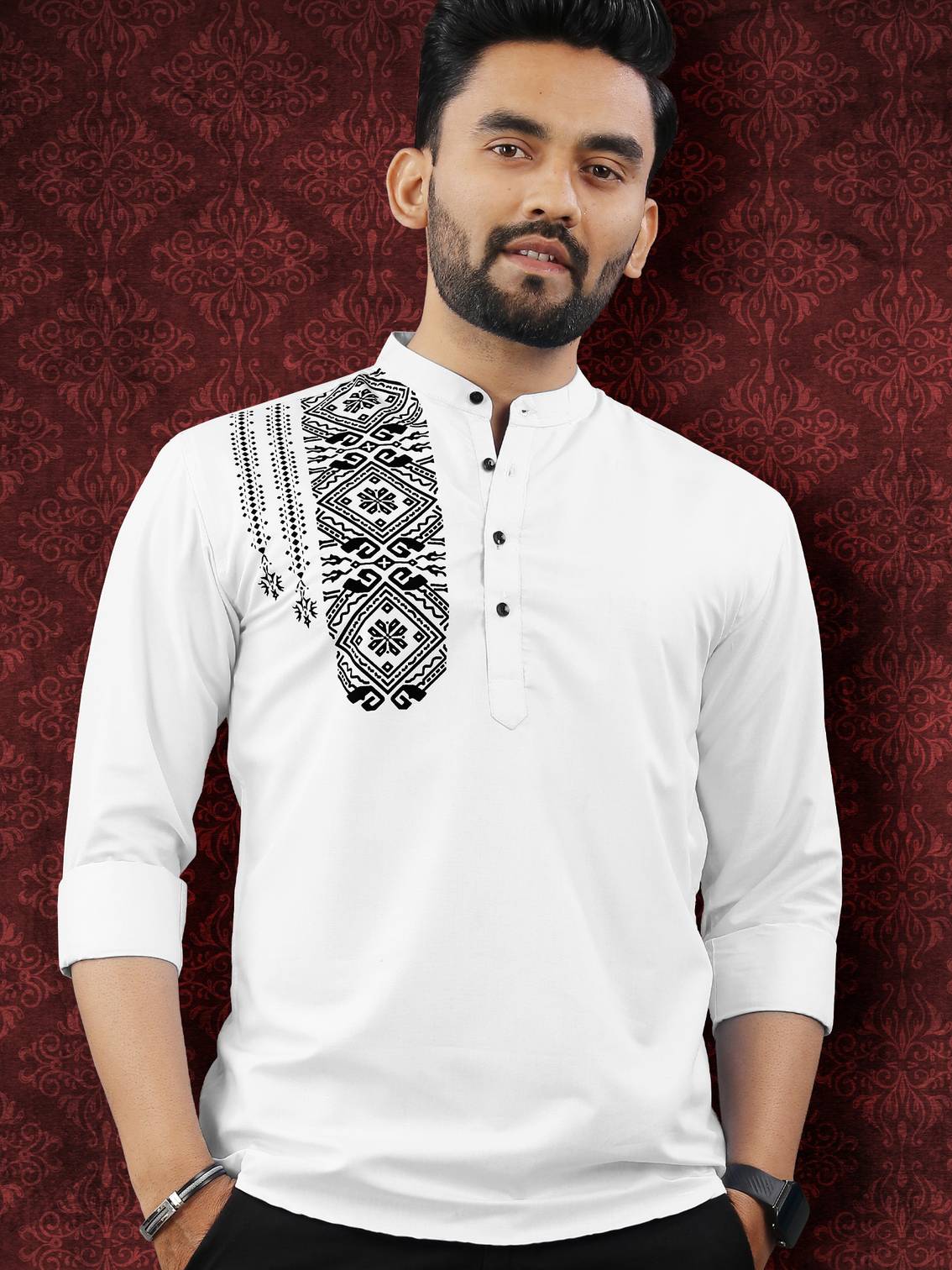 वेबनॉर पुरुषों के लिए सॉलिड स्ट्रेट कुर्ता (सफेद)