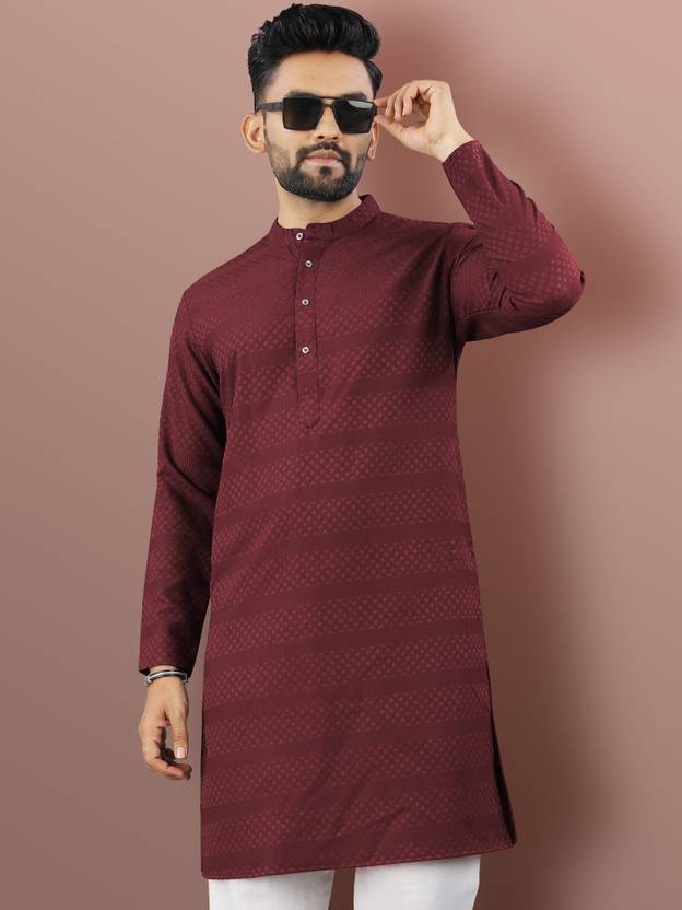 वेबनॉर पुरुषों के लिए सॉलिड स्ट्रेट कुर्ता (मैरून)