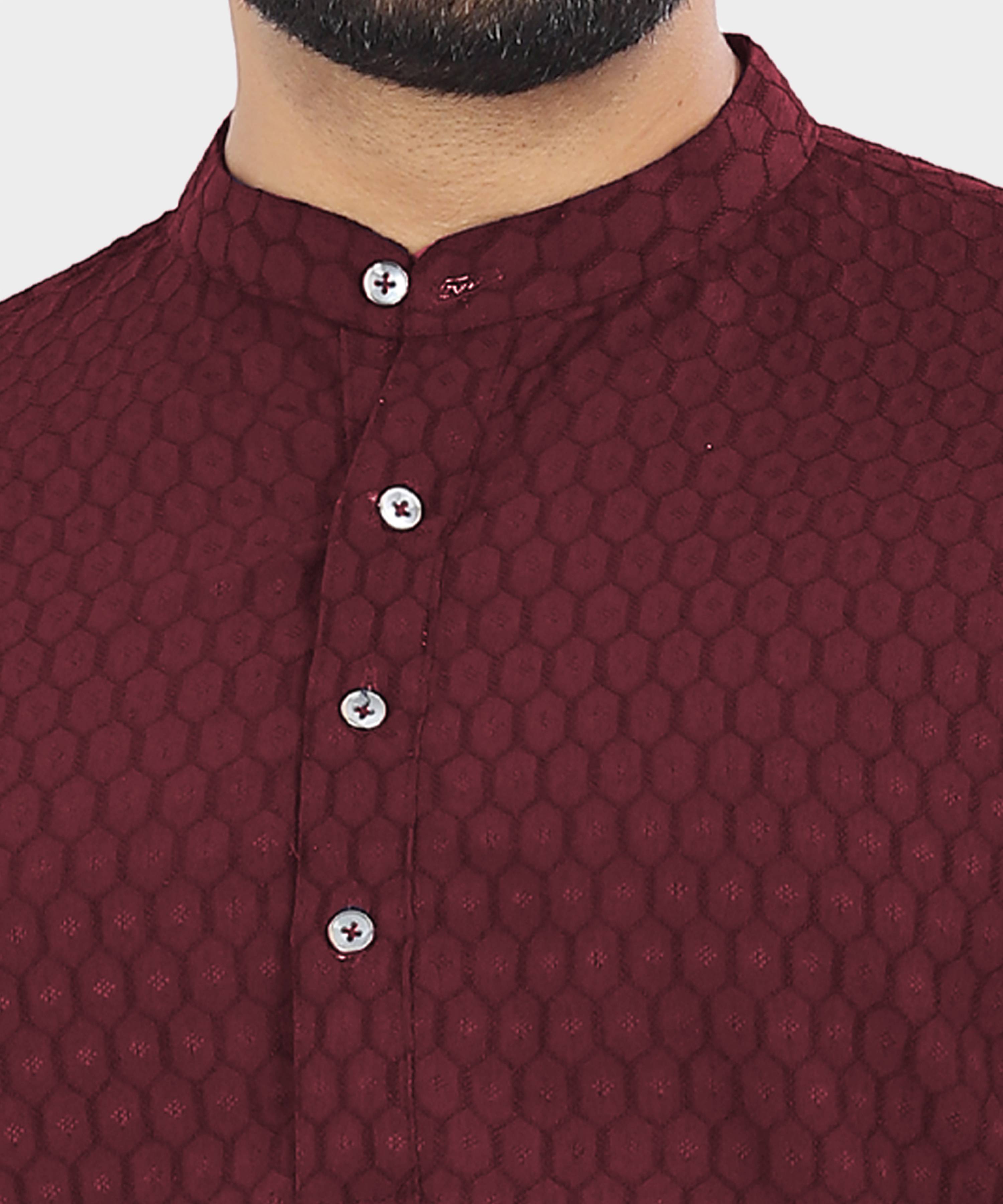 वेबनॉर पुरुषों के लिए सेल्फ डिज़ाइन स्ट्रेट कुर्ता (मैरून)