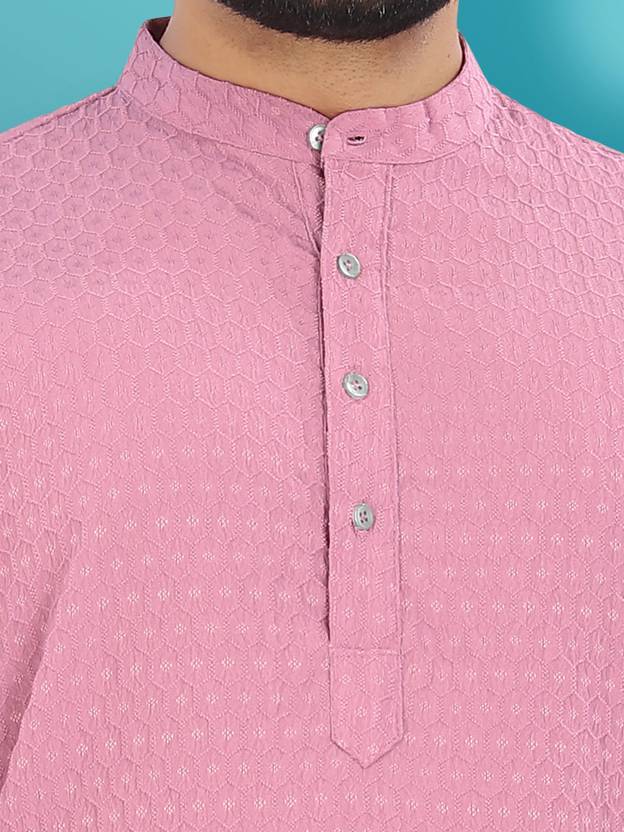 वेबनॉर पुरुषों के लिए सॉलिड स्ट्रेट कुर्ता (गुलाबी)