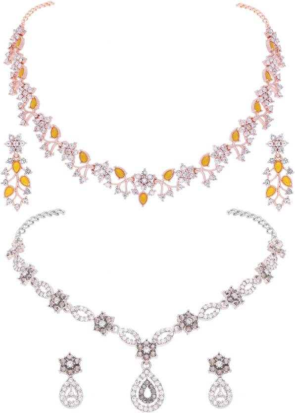 About Product - Pack of 2 Necklace Type: Choker, Stone Type: Artificial stone, Plating : Silver & RoseGold Necklace Closure Type: S Hook, Elevate your jewelry collection with the enchanting Necklace Combo, a captivating ensemble that intertwines the classic charm with the romantic allure of This pairing results in a necklace duo that speaks volumes of elegance, versatility, and a modern twist on timeless beauty.