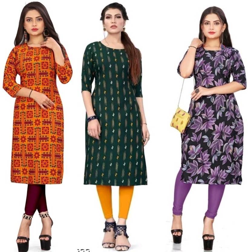 Pack of 3 Women Printed Crepe A-line Kurta (Multicolor)