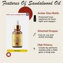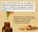 Sandalwood Essential Oil is a product designed for various uses, including aromatherapy, relaxation, and skin therapy. Here's how each application can benefit from sandalwood essential oil: Diffuser: Sandalwood essential oil is prized for its rich, warm, and woody aroma. When used in a diffuser, it can create a calming and soothing atmosphere in your home or workspace. The scent of sandalwood is known to promote relaxation, reduce stress, and enhance mental clarity. It's often used in meditation practices and yoga sessions to induce a sense of tranquility. Relaxation: Sandalwood essential oil has sedative properties that can help calm the mind and body. It's often used in aromatherapy to alleviate anxiety, promote relaxation, and improve sleep quality. Diffusing sandalwood oil or adding a few drops to a warm bath can create a spa-like experience and help unwind after a long day. Skin Therapy: Sandalwood essential oil is known for its skin-healing properties. It has anti-inflammatory and antimicrobial properties that can help soothe irritated skin, reduce redness, and prevent acne breakouts. When diluted with a carrier oil like jojoba or coconut oil, sandalwood oil can be applied topically to moisturize dry skin, soothe sunburns, and promote overall skin health.