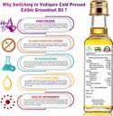 वेडिक्वायर 100% प्योर ऑर्गेनिक कोल्ड प्रेस्ड एडिबल ग्राउंडनट ऑइल - हमारा ऑइल वुड प्रेसिंग रोटरी चेककू घानी मेथड (काची घानी) के साथ हाई-ग्रेड ग्राउंडनट्स को दबाकर निकाला जाता है जो ऑइल तैयार करने की एक ट्रेडिशनल मेथड है और फ्लेवर, न्यूट्रिशनल वैल्यू और अरोमा को बरकरार रखता है। हम अपने ग्राहकों को महत्व देते हैं और अपने प्रोडक्ट्स की रेंज पर भरोसा करते हैं। ऑर्गेनिक ग्राउंडनट ऑइल के फायदे - ग्राउंडनट ऑइल मोनोअनसैचुरेटेड और पॉलीअनसैचुरेटेड फैट्स (अनसैचुरेटेड गुड फैट्स) का एक बेहतरीन सोर्स है, पीनट ऑइल दुनिया भर में इस्तेमाल किया जाने वाला एक पॉपुलर ऑइल है। यह एंटीऑक्सीडेंट विटामिन E का एक अच्छा सोर्स है, जिसमें हार्ट हेल्थ और वेट लॉस शामिल है। आइए मूंगफली के तेल के विभिन्न लाभों को देखें- > दिल के लिए अच्छा: बिना गर्मी, कोई भाप या कोई रसायन के साथ निकाला जाता है। कोई GMOs नहीं, कोई एडेड इंग्रेडिएंट्स नहीं, कोई हेक्सेन नहीं, बस नैचुरल अच्छाई जो हार्ट स्ट्रोक के रिस्क को कम करने में मदद करती है। ब्लड प्रेशर को भी कंट्रोल करता है। > खाना पकाने के लिए: सलाद ड्रेसिंग के लिए, मछली और स्टीक को फ्लेवर करने के लिए, पास्ता के साथ टॉस करने के लिए और डेसर्ट को जैज़ करने के लिए बिल्कुल सही। मूंगफली का तेल बेकिंग, स्यूटिंग, फ्राइंग और खाना पकाने के अन्य रूपों में सबसे अच्छा उपयोग किया जाता है। जबकि मूंगफली का तेल थोड़ा नट्टी फ्लेवर प्रदान करता है, यह आम तौर पर अधिकांश रेसिपी के लिए उपयोग करने के लिए एक अच्छा, न्यूट्रल ऑप्शन है। > बालों के विकास के लिए: कोल्ड-प्रेस्ड ग्राउंडनट ऑइल विटामिन E से भरपूर होता है, जो एक पोटेंट एंटीऑक्सिडेंट है। ये एंटीऑक्सिडेंट बालों को नुकसान से बचाने में मदद करते हैं और नमी में तेल के लॉक होने पर स्प्लिट एंड्स का इलाज करते हैं। नतीजतन, जब आप बालों के लिए मूंगफली के तेल का उपयोग करते हैं तो आपके बाल नरम, चिकने होंगे। > बूस्ट हार्ट हेल्थ- स्वस्थ कोलेस्ट्रॉल के स्तर को बनाए रखें और ब्लड प्रेशर को कंट्रोल करें। इसकी फैट कंटेंट में अल्फा-लिनोलेनिक एसिड नामक ओमेगा-3 फैटी एसिड होता है। ब्रेन हेल्थ के लिए अच्छा है > स्किन के लिए - मूंगफली के तेल की औषधीय कैपेसिटीएं अपार हैं, जो कई त्वचा स्थितियों के लिए एक इफेक्टिव उपाय है। इसमें हाई मात्रा में विटामिन E होता है, जो एक प्राकृतिक एंटीऑक्सिडेंट है। स्कैल्प पर उपयोग त्वचा को नरम, शांत और मरम्मत में मदद करता है। इसके एंटी-इंफ्लेमेटरी प्रॉपर्टीज़ के साथ-साथ इसके हाई न्यूट्रिएंट कंटेंट के कारण।