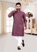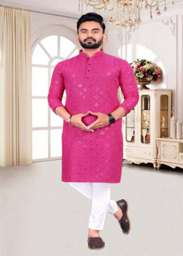Vender Men Chikan Embroidery Straight Kurta (Pink)