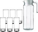 vetreo Round Shape Plain Water GLASS Long Glasses Set & Water jug with Plastic Cap Jug Glass Set (Glass)