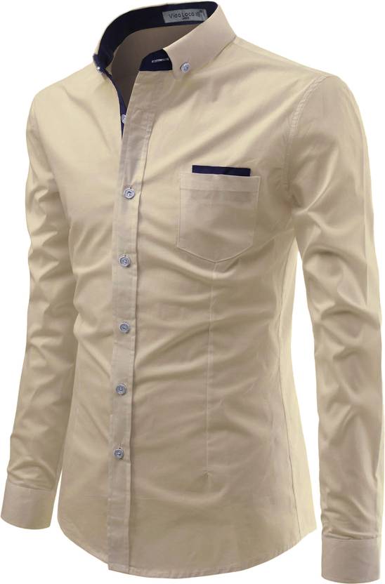 Vida Loca Men Solid Casual Beige Shirt