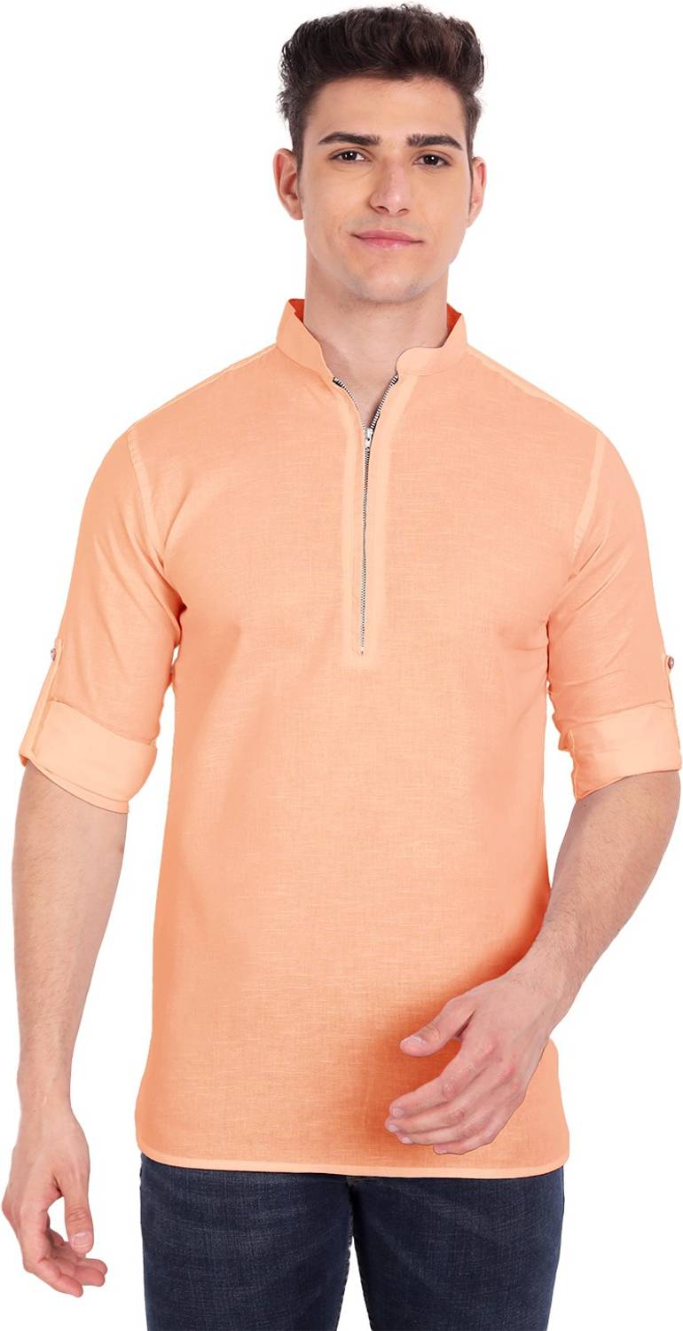 विदा लोका पुरुषों के लिए सॉलिड पठानी कुर्ता (नारंगी)