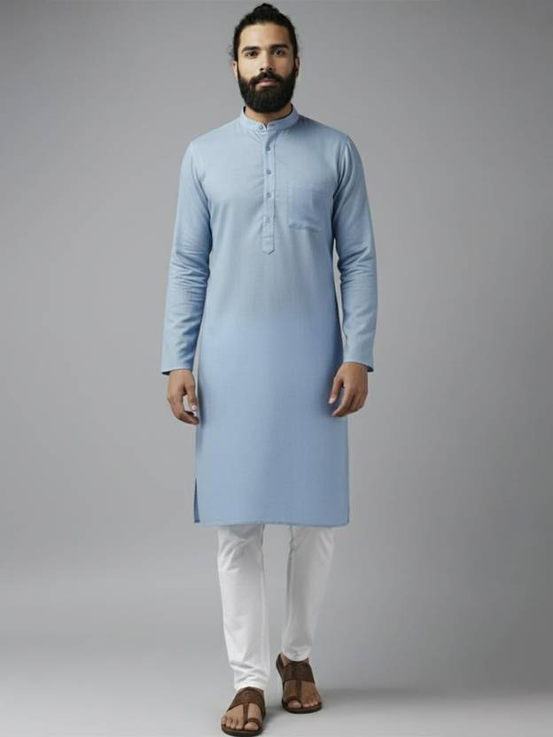 Yugnik Men Solid Pure Cotton Straight Kurta (Blue)