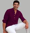 TrendiVastra Men Solid Cotton Blend Straight Kurta (Purple)