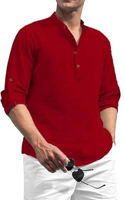 Men Solid Cotton Blend A-line Kurta (Maroon)