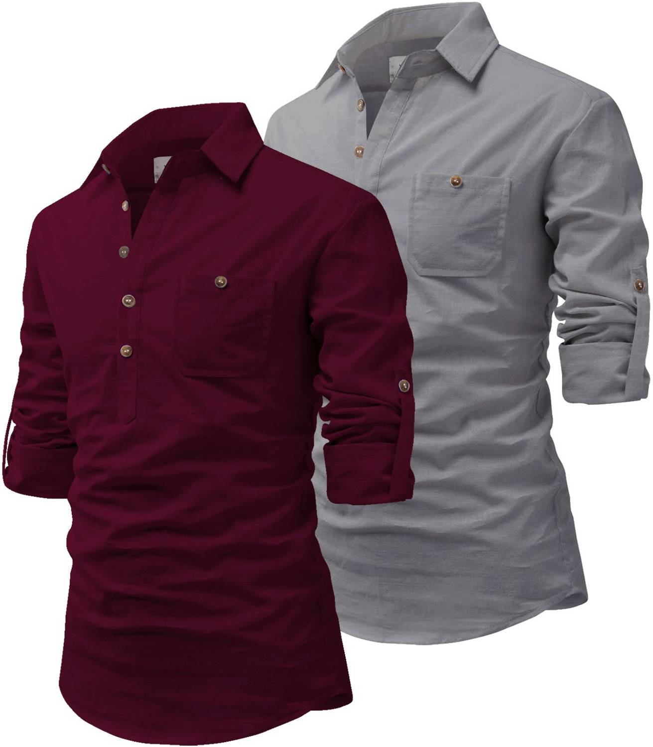 यूनिवाइब पुरुषों के लिए सॉलिड पठानी कुर्ता (मैरून)