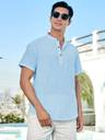 UNIFAV Men Solid Cotton Blend Straight Kurta (Light Blue)