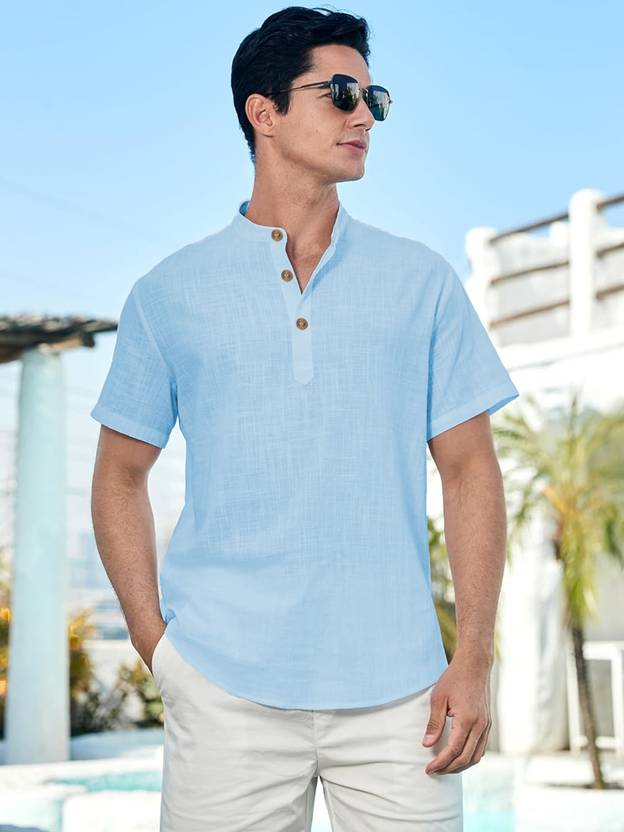 🌟 Elevate Your Style with Versatile Elegance! Introducing the UNIFAV Men's Cotton Blend Half Kurta Style Shirt Pack of 1 in a sophisticated solid pattern. The coupled with accent colors like Grey, Blue, Orange, and more, ensures a wardrobe essential for every occasion. 👔 Design & Fit: Pattern: Solid Color: Black with a spectrum of vibrant tones Closure: Button Weight: Lightweight Fabric: Crafted from Durable Luster Venture Cotton for a sleek finish Collar: Mandarin Collar Length & Sleeves: Regular length, Curved Hemline, and Half Sleeves 🌈 Versatile Style Options: Embrace the possibilities! Pair these kurtas with denim for casual flair or dress it up with tailored trousers for a refined look. The pack of 1 offers endless styling combinations. 🧼 Material & Care: Machine wash with like colors Cold water wash Dry in shade Tumble dry low Iron on the reverse side for lasting elegance 👖 How to Style: For a casual vibe, pair with denim and sneakers. Elevate the look with tailored trousers and loafers for a more polished appearance. The options are endless—express your style!
