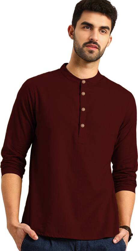 Vida Loca Men Solid Pure Cotton Straight Kurta (Maroon)